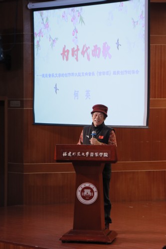 近日,音乐学院在学院演播厅开展了一堂别开生面的“思政课”。闽籍知名作家、大型交响音乐《古田颂》组歌作词者何英女士应邀与学院师生分享创作体会,帮助学生走进作品,演绎诠释《古田颂》。在歌声中思政教育与专业教育有机融合,党的好声音深入人心。