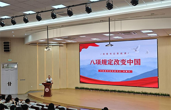 626日,外国语学院党委书记林鲁文为2022级英语(师范)专业学生“八项规定改变中国”专题思政课。