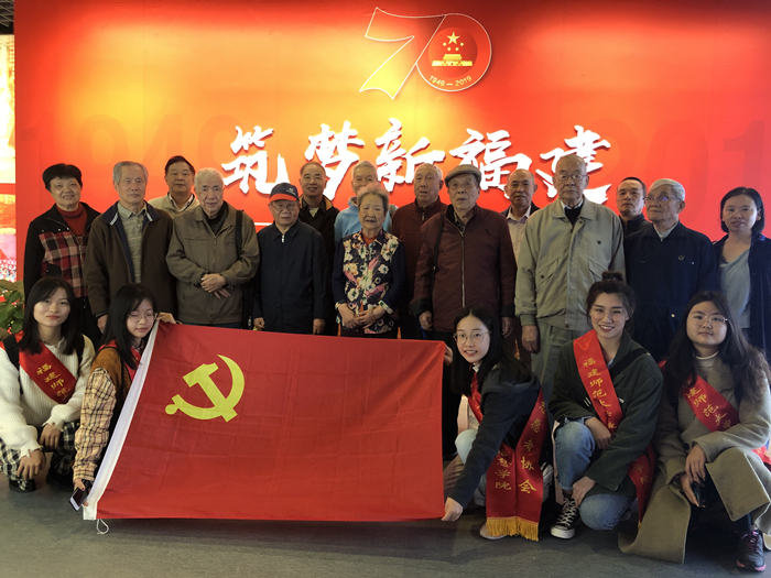 近日,数学与信息学院离退休党支部开展“不忘初心,牢记使命”主题党日活动,组织支部党员前往福建省档案馆参观“筑梦新福建——庆祝新中国成立70周年档案图片展”。学院2017级本科党支部党员和部分志愿者参与了此次活动。活动中,老同志们一边参观档案照片,一边现身说法,畅谈改革开放的辉煌成就。老党员们讲得真切,学生党员们听得入迷,老少互动,其乐融融。 (数学与信息学院 游崇盈)