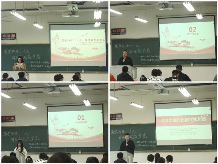 本科2022级马克思主义理论类一班、二班团支部与共青团中国航空油料有限责任公司福建分公司委员会共同举办“笃学共话二十大,青马筑梦新征程”主题座谈会。马克思主义学院学生代表围绕学习贯彻党的二十大精神开展主题宣讲,共青团中国航油福建分公司委员会书记肖明沅详细介绍中国航油福建分公司,并结合工作实际,深入解读新时代工匠精神的基本内涵和现实意义,勉励青年学生将工匠精神铭记于心,外化于行,为新时代人才队伍建设贡献力量。与会师生与员工代表还围绕碳达峰碳中和、中国式现代化、新时代青年力量等相关话题进行交流研讨,现场气氛热烈。