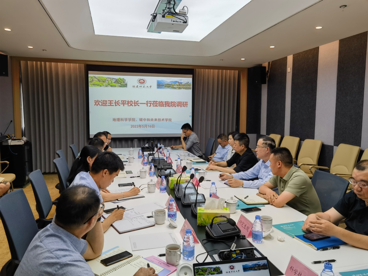 5月16日,校长王长平带领相关职能负责人到地理科学学院、碳中和未来技术学院开展“聚焦学科高质量发展,深入推进新一轮‘双一流’建设”主题调研活动,学院党政领导班子、各科室负责人参加了调研会。