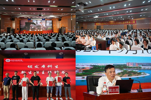 典礼结束后,国家级教学名师、国家“万人计划”领军人才黄志高以“福建师大物理人的家国情怀”为主题讲授“开学第一课”。他围绕物理学学科建设之路、教育教学改革之路、校友之光、师大物理人的家国情怀等方面,讲述了学院学科建设发展和教育教学改革过程中的真实故事和前辈事迹,勉励新生们要向优秀前辈和校友学习,在民族复兴的浪潮中挺膺担当、不负使命。