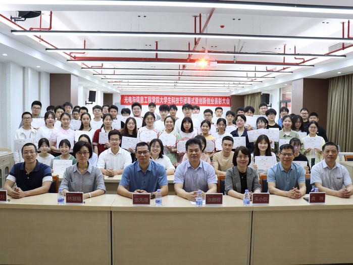 近日,光电与信息工程学院举行第十一届大学生科技节闭幕式暨2022年度创新创业表彰大会。学院领导,各系部主任,教师代表,各年级辅导员以及获奖学生代表参加大会。