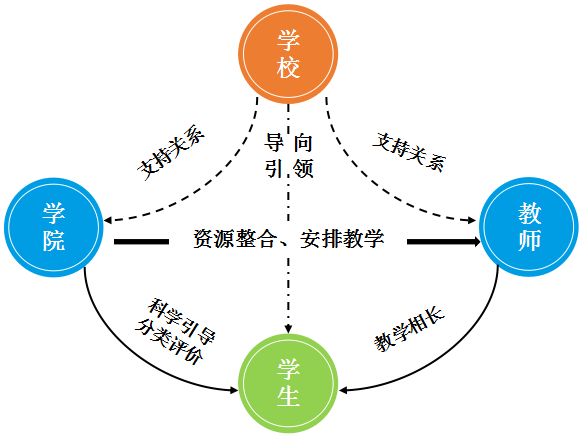建立学校、学院、专业有效联结的分工协调机制,如图1所示。