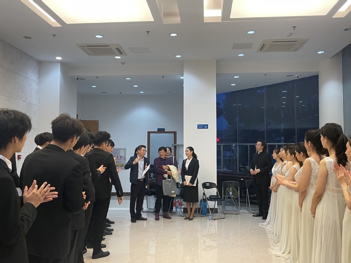 演出开始前,校党委副书记陈晓红来到现场与合唱团成员亲切交流,她希望成员们保持初心、再接再厉,展现新一代青年大学生的风采。