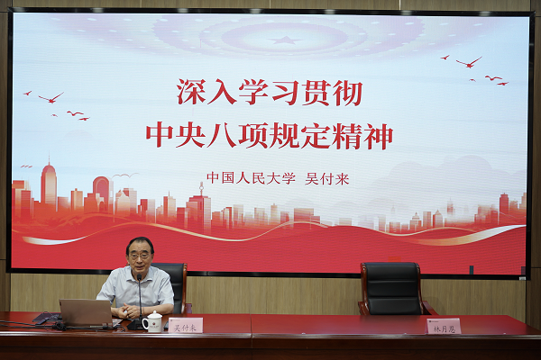 9月26日,国务院学位委员会纪检监察学学科评议组成员,中国人民大学原党委副书记、纪委书记吴付来教授应邀来到校纪检监察讲堂,作题为“深入学习贯彻中央八项规定精神”的学术报告。校长郑家建教授会见了吴付来教授。报告会由校纪委书记、省监委驻OD官网监察专员林月恩研究员主持,学校干部、教师、学生代表参加。
