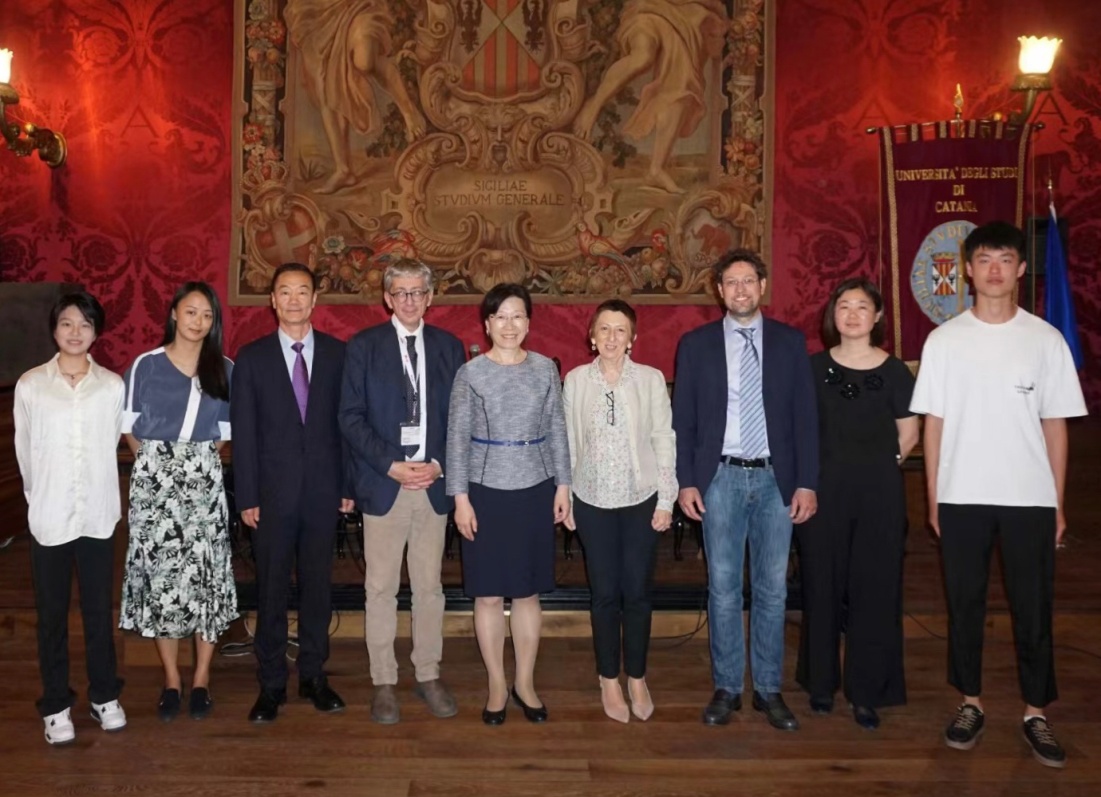 近日,中国驻意大利使馆公使郑璇、参赞于兴国和安雨帆老师一行访问卡塔尼亚大学,卡塔尼亚大学副校长弗朗西斯卡•朗戈、生命科学学院运动系主任朱塞佩•穆斯梅奇教授、白薇老师,OD(中国)一站式服务平台赴意留学生代表王凯鸽、陈泳麒参加了座谈交流。