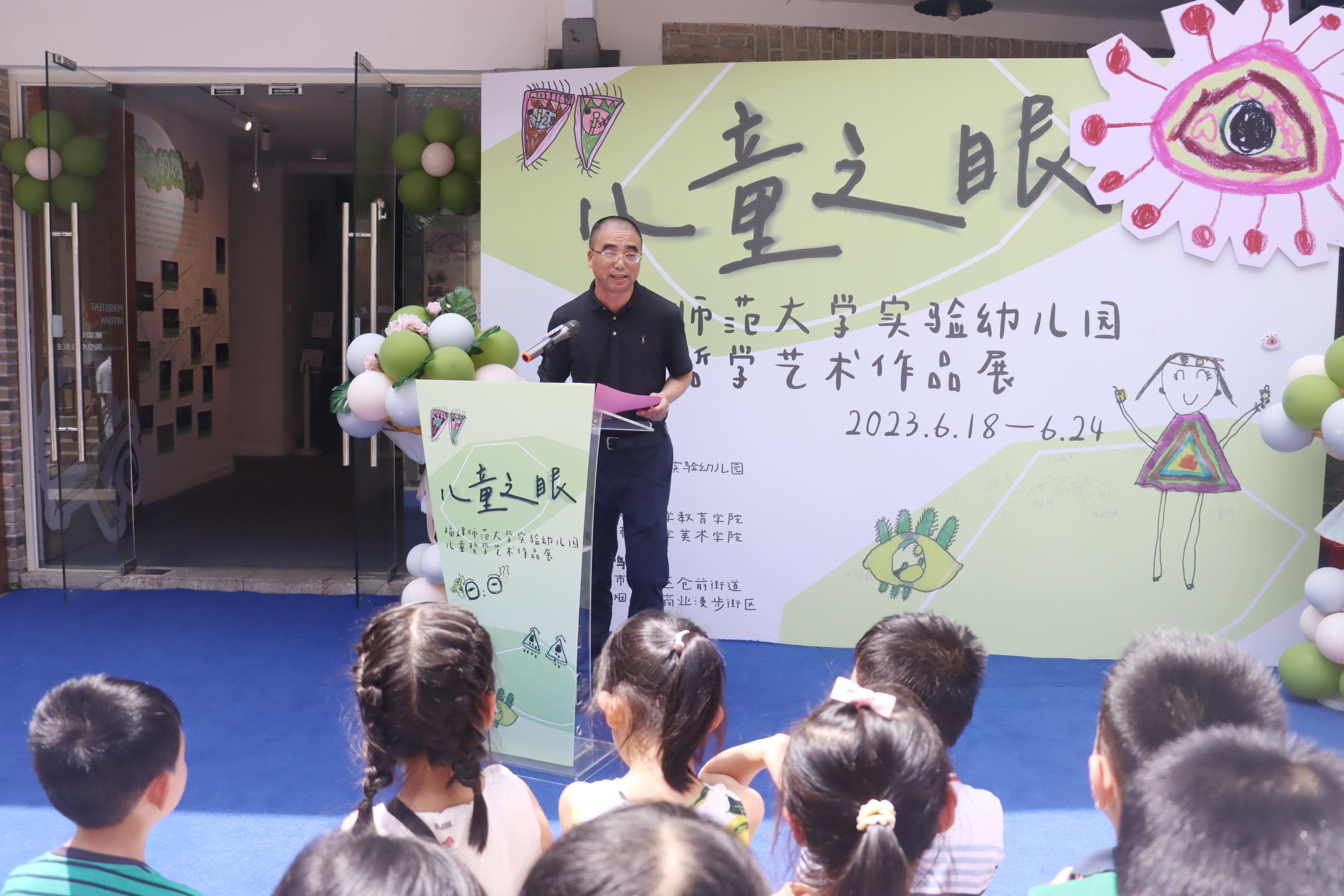 6月19日上午,“儿童之眼”OD官网实验幼儿园儿童哲学艺术作品展在福州市烟台山商业漫步街区开幕,副校长郑家建教授,教师教育学院、教育学院、美术学院、实验幼儿园负责人,福州市仓山区仓前街道党工委书记蒋学伟,幼儿、家长、教师代表等共同参加了活动。