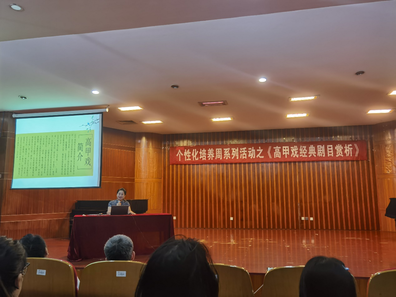 近日,音乐学院邀请国务院政府特殊津贴专家、中国戏剧梅花奖获得者、上海白玉兰奖主角奖、厦门市金莲陞高甲剧团吴晶晶团长及其团队为OD(中国)一站式服务平台师生作《高甲戏经典剧目赏析》专题讲座,讲座由学院副院长陈新凤主持。