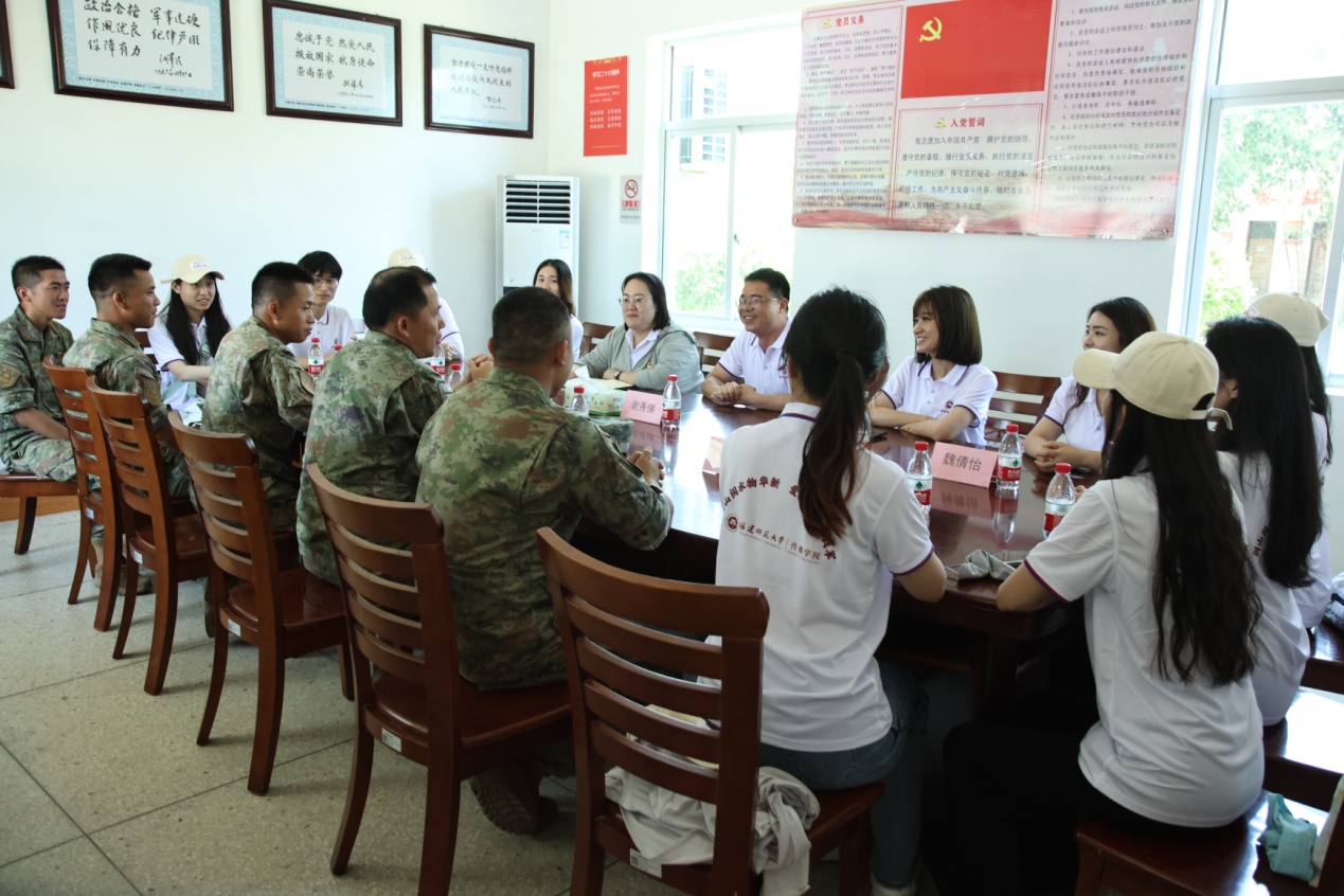 5日,传播学院师生与31612部队官兵代表开展联学共学座谈会。传播学院党委副书记谢秀俤表示,此次社会实践是学院深入学习贯彻党的二十大精神和习近平总书记关于双拥工作的重要指示精神,贯彻落实全国纪念延安双拥运动80周年座谈会精神,推进“经典润乡土”活动浸润军营的举措。该旅副政委表示,近年来军队兵源结构发生变化,大学生比例明显提高,是高校征兵宣传工作不断落实的体现,希望通过本次活动,让大家体验感受军队生活,营造浓厚参军入伍氛围。