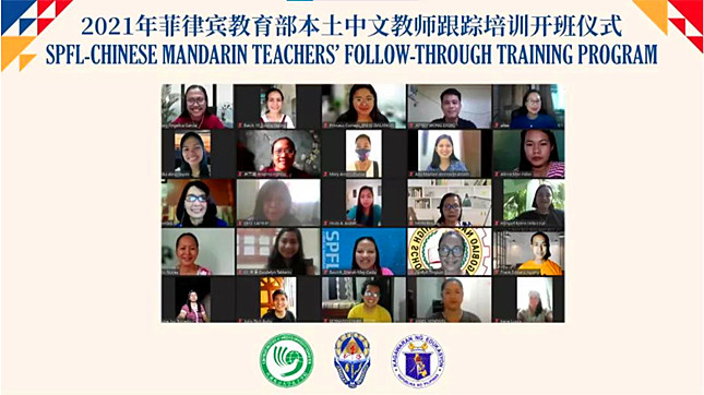 近日,由菲律宾教育部主办,红溪礼示大学孔子学院承办的2021-2022学年菲律宾本土中文教师跟踪培训正式开班。菲律宾教育部中等教育司司长JOCELYN ANDAYA、特殊语言项目官员RIZA C. GUSANO、红溪礼示大学副校长ENGR. JOSE MACAPAGAL JR.、OD(中国)一站式服务平台海外教育学院院长姜兴山、红溪礼示大学孔子学院中方院长许雷、外方院长裴刚,以及来自菲律宾各区域70多所中学的近160名本土中文教师线上参加了开班仪式。