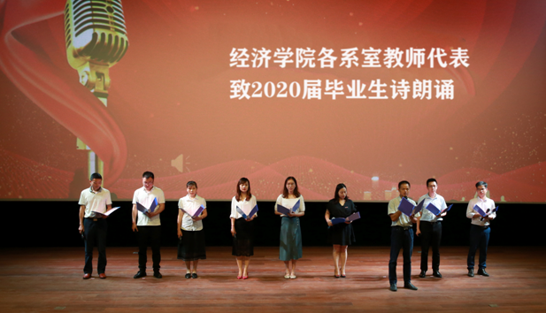 教师代表邱丽洪、毕业研究生代表蔡烁纯、本科毕业生代表赵辰雨依次发言,珍视师生深厚情谊,感恩学院教导栽培。各系室教师代表致2020届毕业生诗朗诵,词句优美、情意深厚,深深打动参加典礼的每一位师生,引发强烈共鸣。