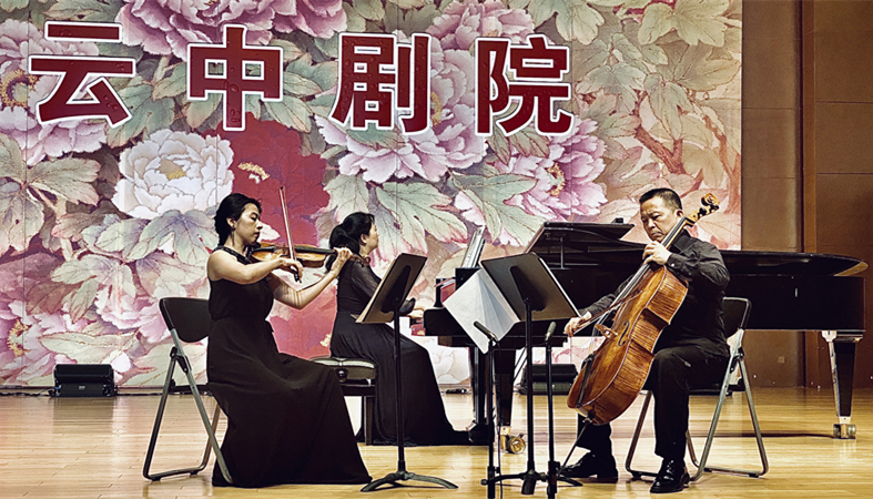 6月18日晚7:30,直播声乐与器乐综合场演出——《艺术传情,风雨同心》,音乐学院创作团队新作钢琴三重奏“致敬英雄”压轴登场,获得了观众的热烈好评。作品《致敬英雄》由张潇霞作曲,肖珂、林忠东、叶佳亮演奏。通过钢琴、小提琴、大提琴三件乐器和谐默契的重奏,以及乐曲结尾处对《我的祖国》经典片段的改编呈现,描绘、致敬时代英雄,旨在鼓舞士气,振奋精神,传播众志成城共克时艰的正能量。