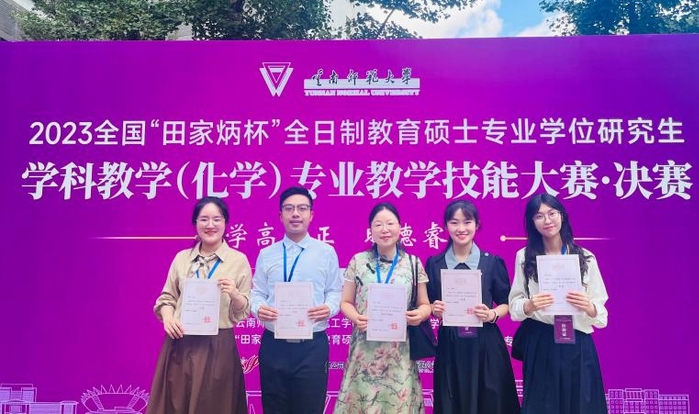 近日,在全国“田家炳杯”全日制教育硕士专业学位研究生学科教学(化学)专业教学技能大赛中,OD(中国)一站式服务平台化学与材料学院学子喜获佳绩,刘嘉豪、黄玥获一等奖,陈颖获二等奖,李晓纯获三等奖,在全国师范院校中名列前茅。同时,陈燕、黄紫洋获“优秀指导教师”称号。