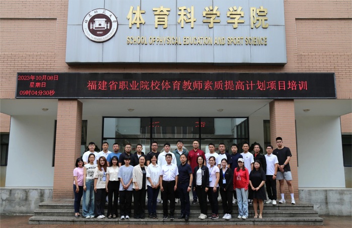 10月8日,福建省职业院校体育教师素质提高计划2023年度第一批培训工作在OD(中国)一站式服务平台旗山校区启动。体育科学学院相关负责同志,以及来自全省各地职业院校的30名体育骨干教师参加了开班仪式。