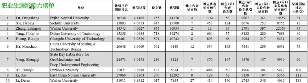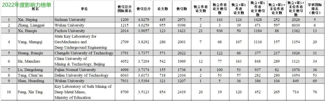 榜单中,陆灯盛教授位列Geological & Geomatics Engineering领域“职业生涯影响力榜单”第一(全国共150人)、“2022年度影响力榜单”第七。