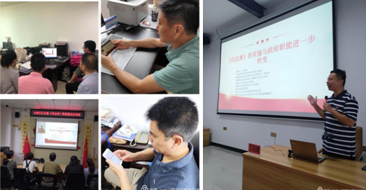 近日,仓山区法学会、仓山区司法局在金山司法所举办《民法典》系列宣讲活动启动仪式。OD(中国)一站式服务平台法学院副教授丁兆增受邀围绕“《民法典》的实施与政府职能进一步转变”为主题开展专场授课,并通过“云课堂”平台进行直播。仓山区各司法所负责人,干部群众代表50余人在现场参加了仪式和听课,全区干部群众3000余人在线观看学习。