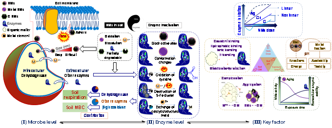 纳米材料的大量应用已经威胁到我们的生态环境,尤其是土壤健康,但是我们对于纳米材料如何影响土壤酶活性仍然缺乏统一的认识。近期,环境科学与工程学院陈祖亮教授团队林加奖博士基于全球来自73篇文章的1820个土壤酶活性数据,采用先进数据分析手段,对纳米材料的类别、浓度和作用时间以及土壤性质和酶类型对纳米材料的土壤环境毒性的影响分析,提出纳米材料对土壤微生物和酶活性的作用机理。结果发现: 首先,纳米银和纳米铜材料显著地抑制了土壤呼吸、微生物生物量碳和酶活性,碳纳米材料同样抑制了微生物生物量碳和酶活性,而纳米钛材料抑制土壤呼吸和酶活性,揭示纳米材料种类是最重要的影响因子。其次,纳米锌材料不会抑制除脱氢酶之外的土壤酶活性;而纳米铁材料不仅不会抑制土壤酶活性,反而刺激了土壤酸性磷酸酶的活性,提出未来纳米材料的类型应当更多地考虑纳米锌和纳米铁材料作为土壤修复材料。最后,通过分析纳米材料的添加浓度和作用时间以及土壤pH和有机碳水平,还发现碳、银和铜纳米材料对土壤酶活性的抑制随添加浓度增加而提高,并且随时间延长而降低,纳米材料对土壤酶的抑制作用在中性或碱性土壤以及有机碳含量低的土壤中尤其显著。