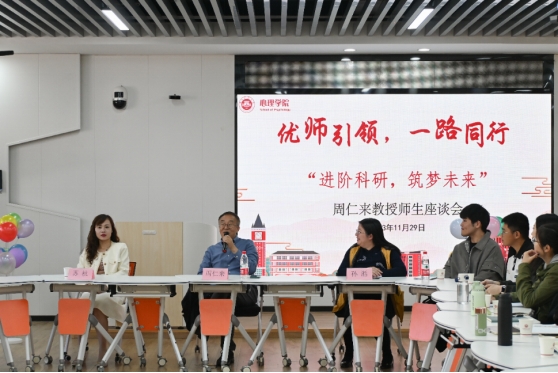日,心理学院邀请南京大学心理系主任周仁来教授来交流指导,并举办“优师引导,一路同行——进阶科研,筑梦未来”师生座谈会。院党委副书记苏杭,学院团委书记,学院本科生和研究生代表参加座谈。