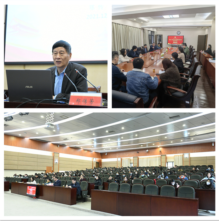 近日,协和学院举行学习贯彻党的十九届六中全会精神宣讲报告会暨院党委理论学习中心组(扩大)学习会,邀请中央马克思主义理论研究和建设工程首席专家、省委宣讲团成员、学校“学习贯彻党的十九届六中全会精神宣讲团”成员郑传芳教授作专题报告。学院领导,全体行政、教辅人员,全体辅导员,马克思主义学院全体教师,师生代表参加了学习会。