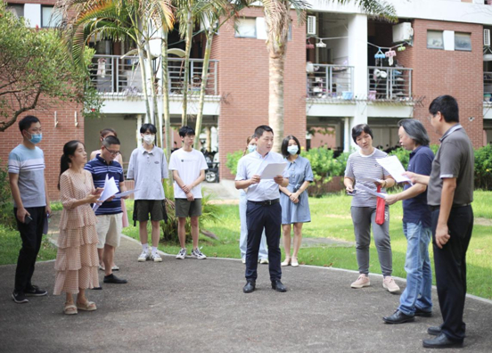 此次演练主要针对教室、宿舍出现发烧咳嗽等疑似新冠肺炎症状学生,启动应急预案,多方联动科学处置。应急演练中,发现情况做到第一时间反应、第一时间汇报、第一时间处置,即班级公共卫生员第一时间向辅导员汇报、辅导员第一时间学院领导汇报并前往事发地、课任老师第一时间联系校医院、班级同学第一时间做好防控措施、疑似症状学生第一时间前往临时观测点隔离、消杀工作人员第一时间开展消杀。演练现场紧张有序,流程有条不紊,各个环节衔接到位。在观摩完整个演练过程后,学院领导要求落实落细疫情防控要求,一要密切关注学生身心健康,继续完善细化应急方案,健全应急响应机制;二要责任落实到人,层层把关,完善应急响应团队,做到合理分工、责任明确;三要统一认识,师生通力合作,形成合力闭环,筑牢疫情防控的安全线。