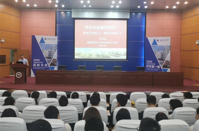 9月23日,地理科学学院2020级迎新大会在图书馆大礼堂举行。院领导、各系主任、综合办公室、各年级辅导员,以及2020级全体新生参加了迎新大会。