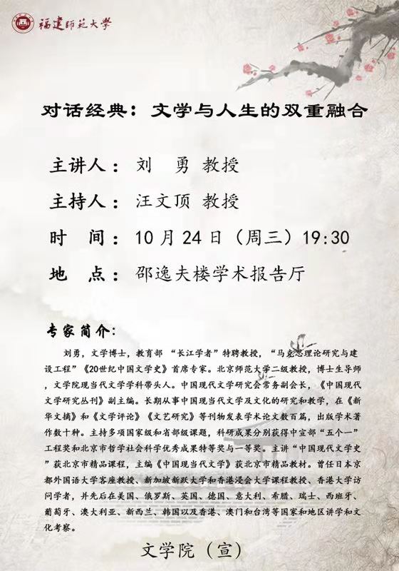 学术讲座【对话经典:文学与人生的双重融合】