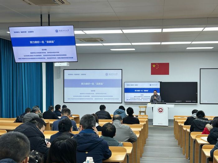 2月25日,数学与统计学院邀请校优秀教师先进事迹宣讲团成员倪祥银研究员为全体教职工作师德师风建设专题讲座。学院党委书记程惠斌主持。
