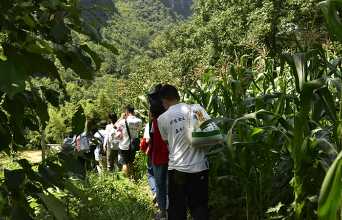 (图为“风信子爱心义教团”在家访送温暖途中)