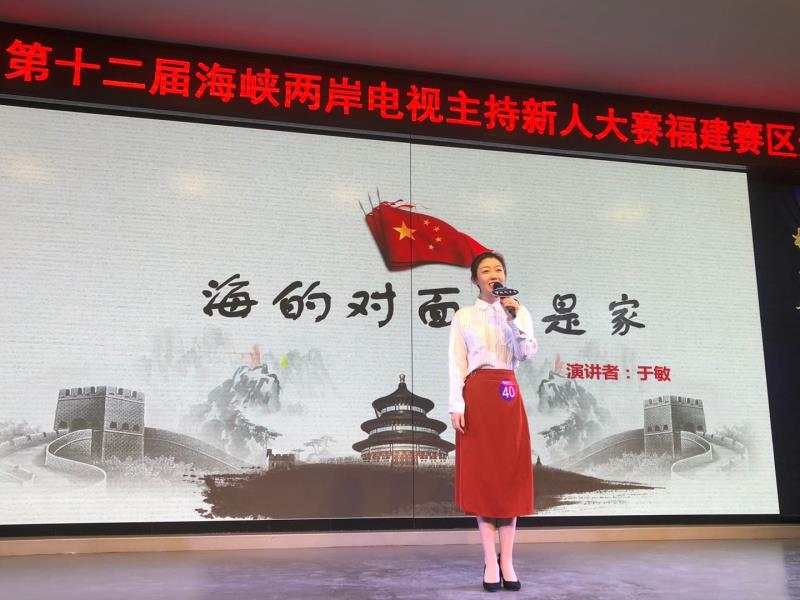 福建赛区总决赛分为“黄金搭档180秒”与“即兴评述”两个环节,着重考验选手的即兴语言表达功底,评委依次根据每个环节表现进行现场打分。传播学院选手于敏在第一轮比赛中抽到“平潭蓝眼泪”主题进行搭档模拟主持,她和搭档采取了演播厅与现场连线的方式进行展示,以生动有趣的现场报道赢得了评委老师肯定;在之后的即兴评述环节,她再次以较强的语言组织能力以及自信稳定的舞台表现脱颖而出,荣获本次比赛第一名。