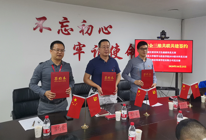 1023日,数学与信息学院2018级本科党支部与高新区教育和卫生健康局党支部、福州高新区高宏培训学校有限公司党支部在高新区教育和卫生健康局会议室举行党建共建协议签署仪式。