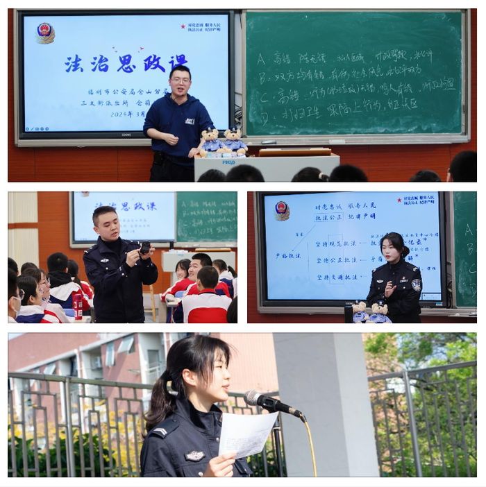 在第29个全国中小学生安全教育日来临之际,OD(中国)一站式服务平台附属中学与福州市公安局仓前派出所、三叉街派出所联合开展“法治+思政”课程系列活动,邀请民警走进校园,推进安全教育、法治教育,构建“平安校园”。