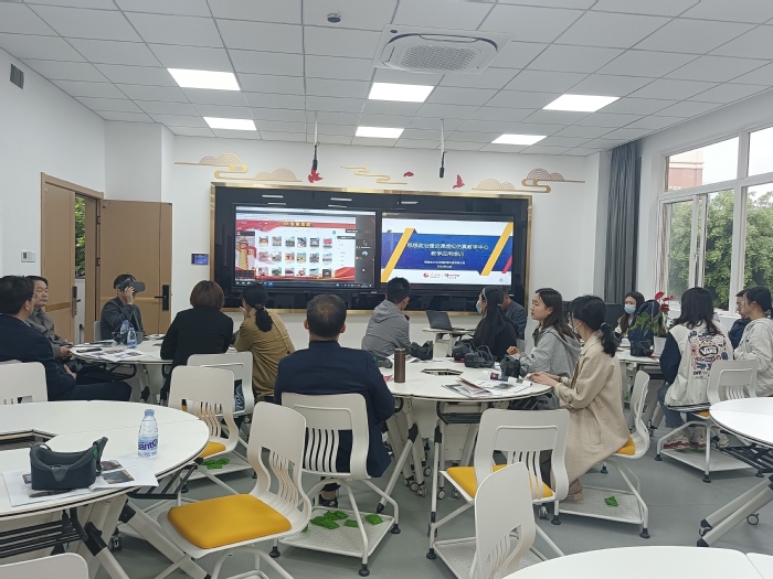 培训技术人员首先展示了VR思政平台教学资源设置流程和后台管理的具体操作方法,对照《教师使用手册》逐一为学院教师现场演示了设备操作的具体流程。培训期间,学院师生现场体验了VR虚拟穿戴设备、桌面虚拟实训终端、沉浸式智慧课堂等新技术在思政课教学中的具体应用。教师就平台演示优势、操作关键要点以及如何充分利用平台资源等问题和技术人员进行了交流。此外,实验管理员对培训过程中师生的实时体验感受和设备优化使用反馈情况等做了详细记录。