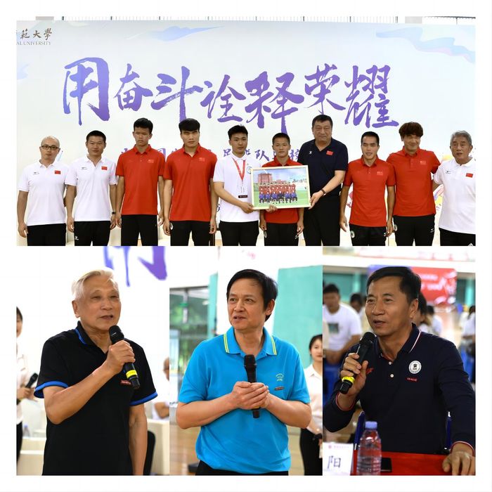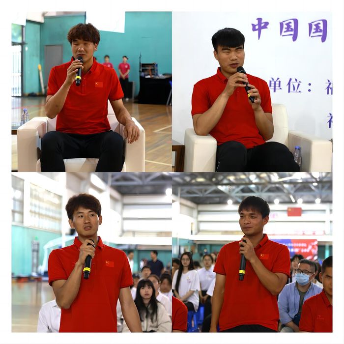 在互动交流环节,王震声、张涵劲、蔡向阳三位老师分享了参加活动的感受及院关工委举办此次活动的初衷,希望以榜样的力量激励师生们传承中华体育精神,进一步加深同学们对盲人足球运动项目的理解。活动最后,体科院学子为中国国家盲人足球队送上定制绘画,表达学子们对国家盲人足球队即将出征残奥会的支持和祝福。