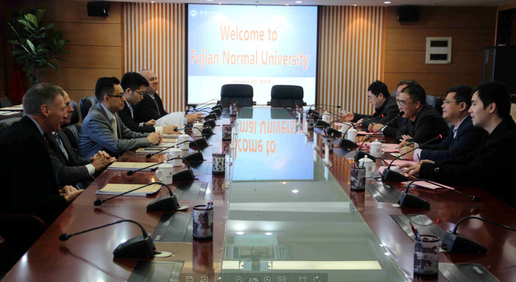 On the morning of January 10th, delegation of CMS Global, Seton Hill University and MCK University visited FNU for collaboration. President Wang Changping, vice presidents Lai Hairong and Zheng Jiajian met with the guests, and heads of Office of International Cooperation and Exchange, Online and Continuing Education College and other related units attended the meeting.