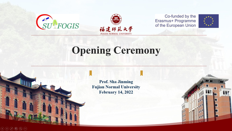 Recently, the EU ERAMUS+ Programme SUFOGIS (GIS and Remote Sensing for Sustainable Forestry and Ecology, 598838-EPP-1-2018-EL-EPPKA2-CBHE-JP) Winter Online Training Course, undertaken by School of Geographical Sciences of FNU, has started. The opening ceremony, presided over by Professor Sha Jinming from School of Geographical Sciences of FNU, was attended by 216 students and teachers from universities and research institutes in China, including Zhejiang University, Aerospace Information Research Institute of Chinese Academy of Sciences, Tibet University, Yanbian University, Yangtze Normal University, Xiamen University of Technology, Guizhou Education University and FNU, as well as from foreign universities, such as National University of Malaysia, Volga State University of Technology, University of Delhi and University of Nigeria.
