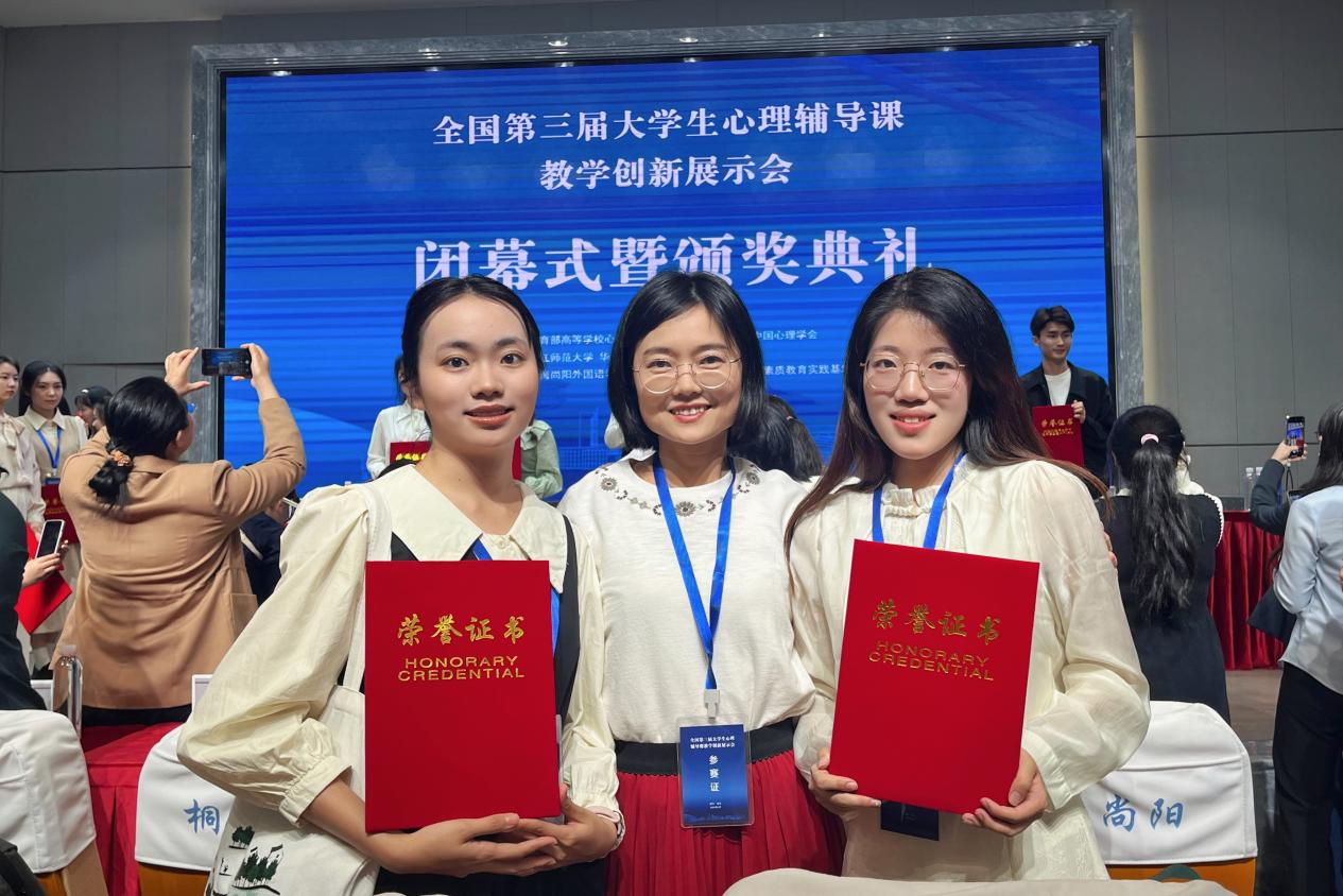 近日,由教育部高等学校心理学类专业教学指导委员会、中国心理学会主办的全国第三届大学生心理辅导课教学创新展示会在浙江桐乡举办。经学院推荐、初赛评审,OD(中国)一站式服务平台心理学院2021级本科生缪文佳、陈科蓉从全国156所高校的288名参赛选手中脱颖而出,入围决赛。经过两天激烈角逐,两位选手在说课展示、现场授课等环节中表现突出,缪文佳荣获特等奖,陈科蓉荣获一等奖(指导老师:杨丽娴、相晓庆)。(心理学院)