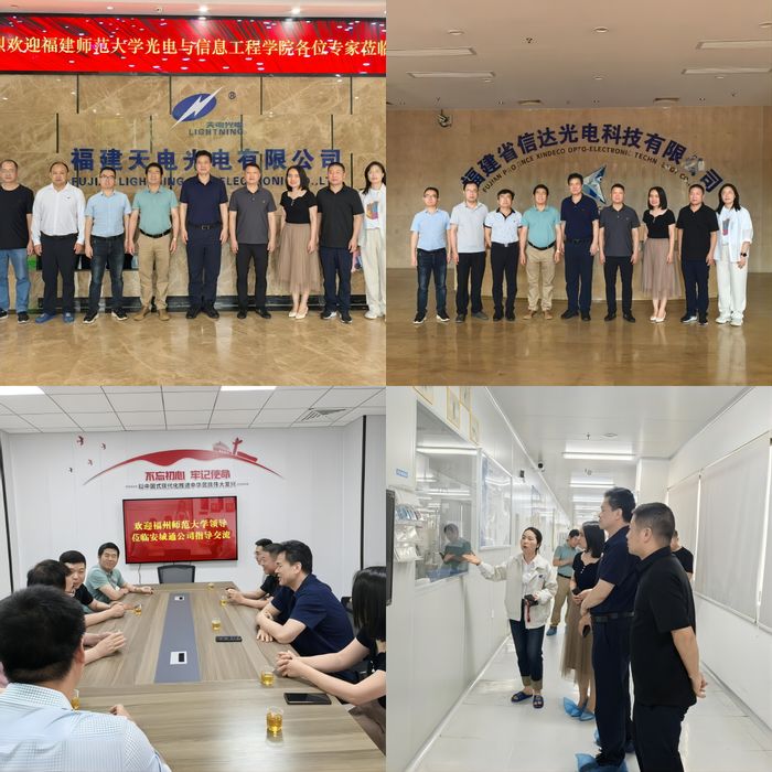 学院一行先后走访了福建天电光电有限公司、福建省信达光电科技有限公司、安城通数字科技有限公司,实地参观公司生产线和研发中心,详细了解公司发展历程、产品特点和市场布局。随后,与光电产业园区管委会、天电光电、信达光电、晶安光电等政企负责人座谈,就校企合作、人才培养、招聘需求等议题展开讨论。张鹏程介绍了学院基本情况、专业设置和人才培养情况,表示学院愿意与企业建立更紧密的合作关系,共同推动光电产业的发展。