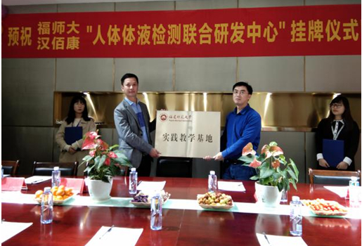 近日,化学与材料学院与福州汉佰康生物科技有限公司举行实践教学基地挂牌暨签约仪式。