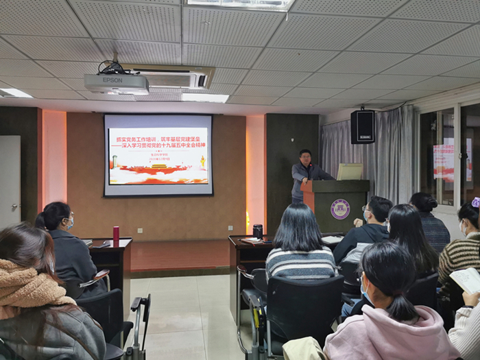 近日,生命科学学院在理工楼201学术报告厅以“抓实党务工作培训,筑牢基层党建堡垒”为主题举办学习贯彻党的十九届五中全会精神活动。院党委副书记吴志锋、各年级辅导员、本科生党员代表、学生党务工作负责人参加了活动。