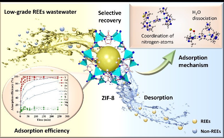 稀土元素因其具有独特的磁性、电子和光学特性,成为许多高科技设备中不可或缺的材料。然而,采矿过程中产生的废水中仍存有大量可回收稀土元素,如不加以资源回收,不仅浪费了宝贵的稀土资源,还会导致严重的环境污染,易引发有毒金属的生物积累和生物多样性的破坏。如何从矿山废水中选择性回收稀土资源仍是一个重大挑战。