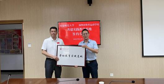 近日,体育科学学院与福州市体育运动学校举行共建“劳动教育实践基地”挂牌仪式。副院长许文鑫、院运动训练系主任徐建华、院团委书记彭艳,福州市体育运动学校校长李晖,福州市体育运动学校全体党政领导参加了挂牌仪式。