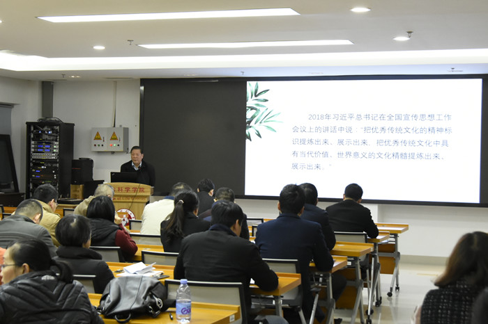 报告会上,郭丹教授从中国传统文化的主要特点、儒家思想文化的主要内容两个方面入手,紧密联系当前社会现实,强调了弘扬传统文化、建设社会主义新道德的重要性。他指出,实施中华优秀传统文化传承发展工程,是建设社会主义文化强国的重大战略任务,对于传承中华文脉、全面提升人民群众文化素养、维护国家文化安全、增强国家文化软实力、推进国家治理体系和治理能力现代化,具有重要意义。