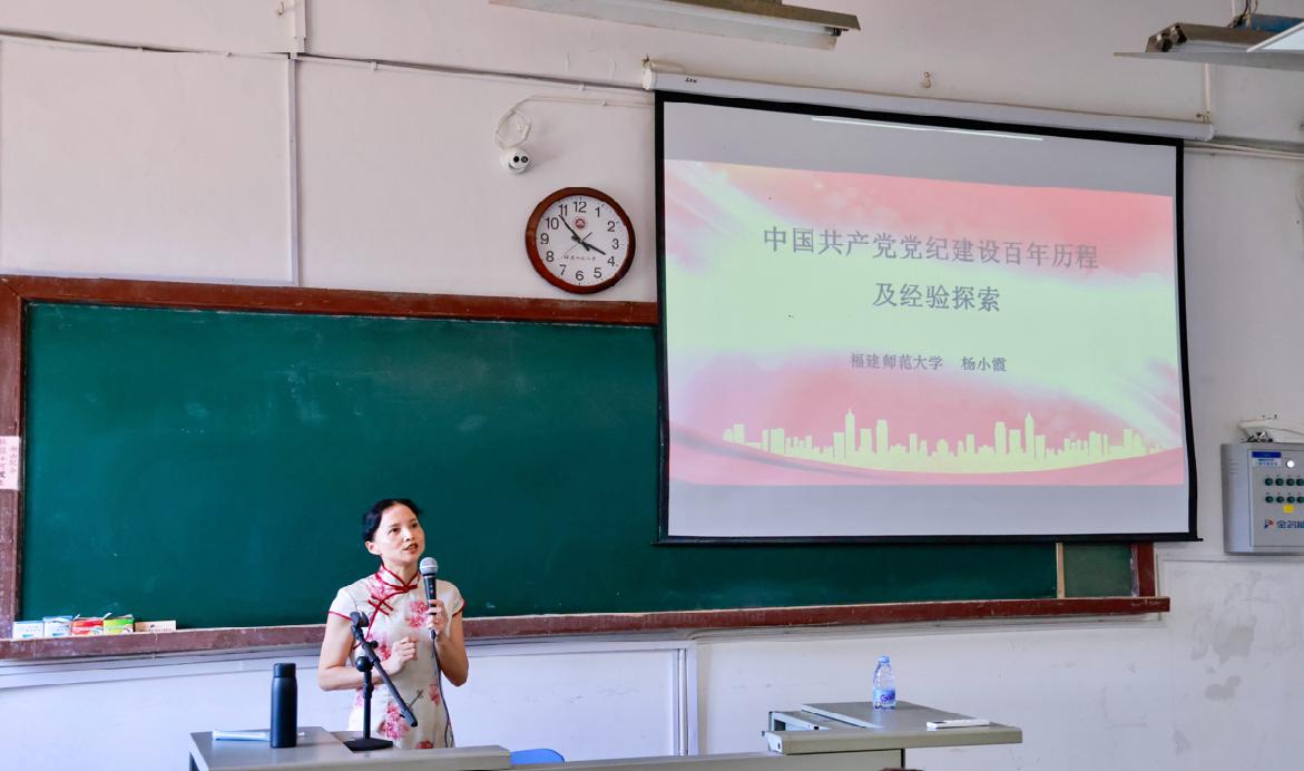 5月29日,教师教育学院在文科楼举行党纪学习教育读书班专题辅导报告会暨学院党委理论学习中心组(扩大)学习会。会议邀请福建省青年讲师团成员、OD(中国)一站式服务平台马克思主义学院杨小霞副教授作题为《中国共产党百年党纪建设探索及其经验启示》的辅导报告,学院党委委员、纪委委员以及师生党员等参加。报告会由学院党委副书记、纪委书记黄一菁主持。