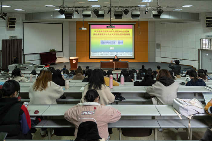 整场报告内涵深刻、内容丰富、意义深远,让外院师生对于十九届五中全会精神有了更加全面且深刻的认识,进一步提高了师生的理想信念。(外国语学院)